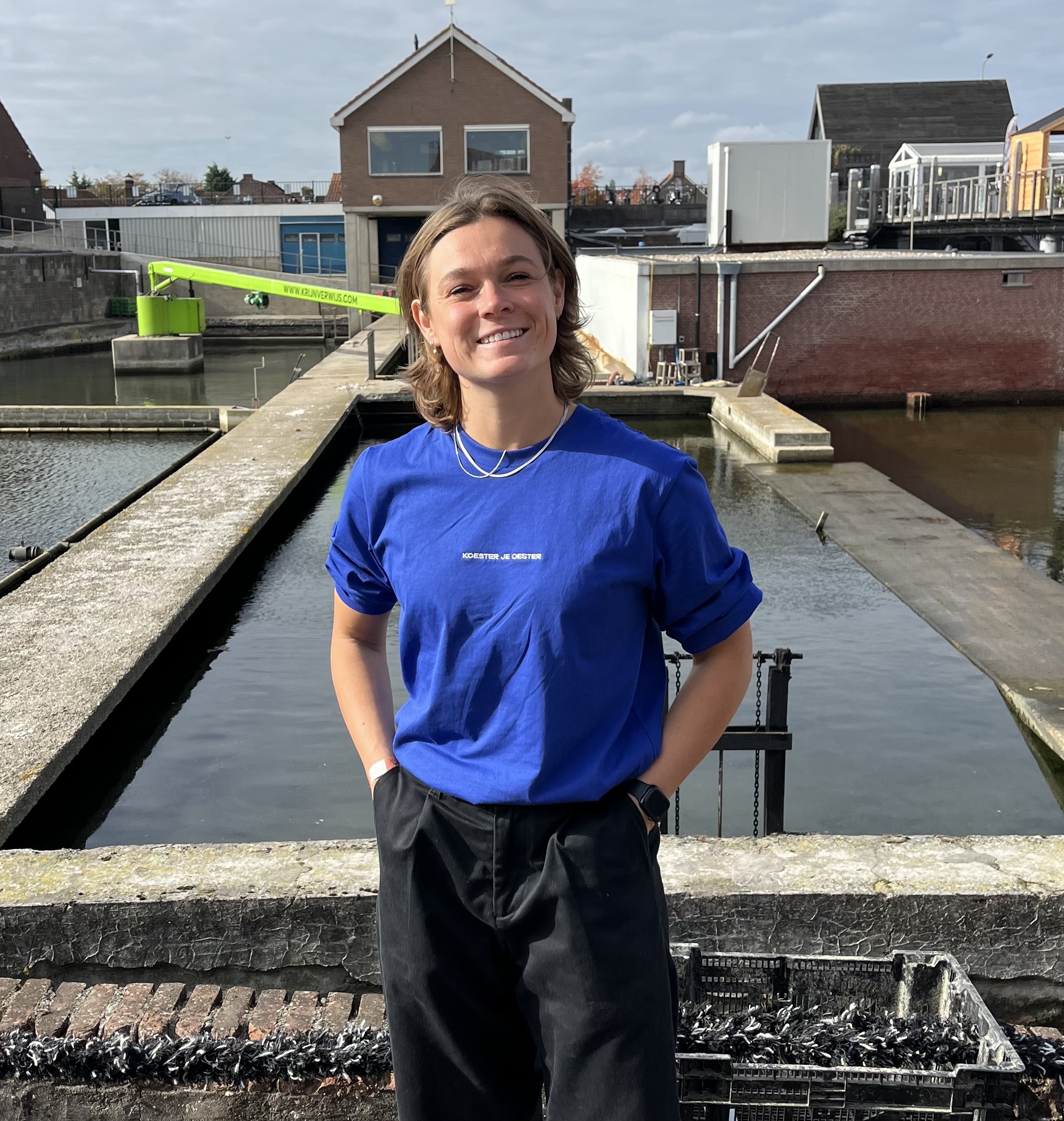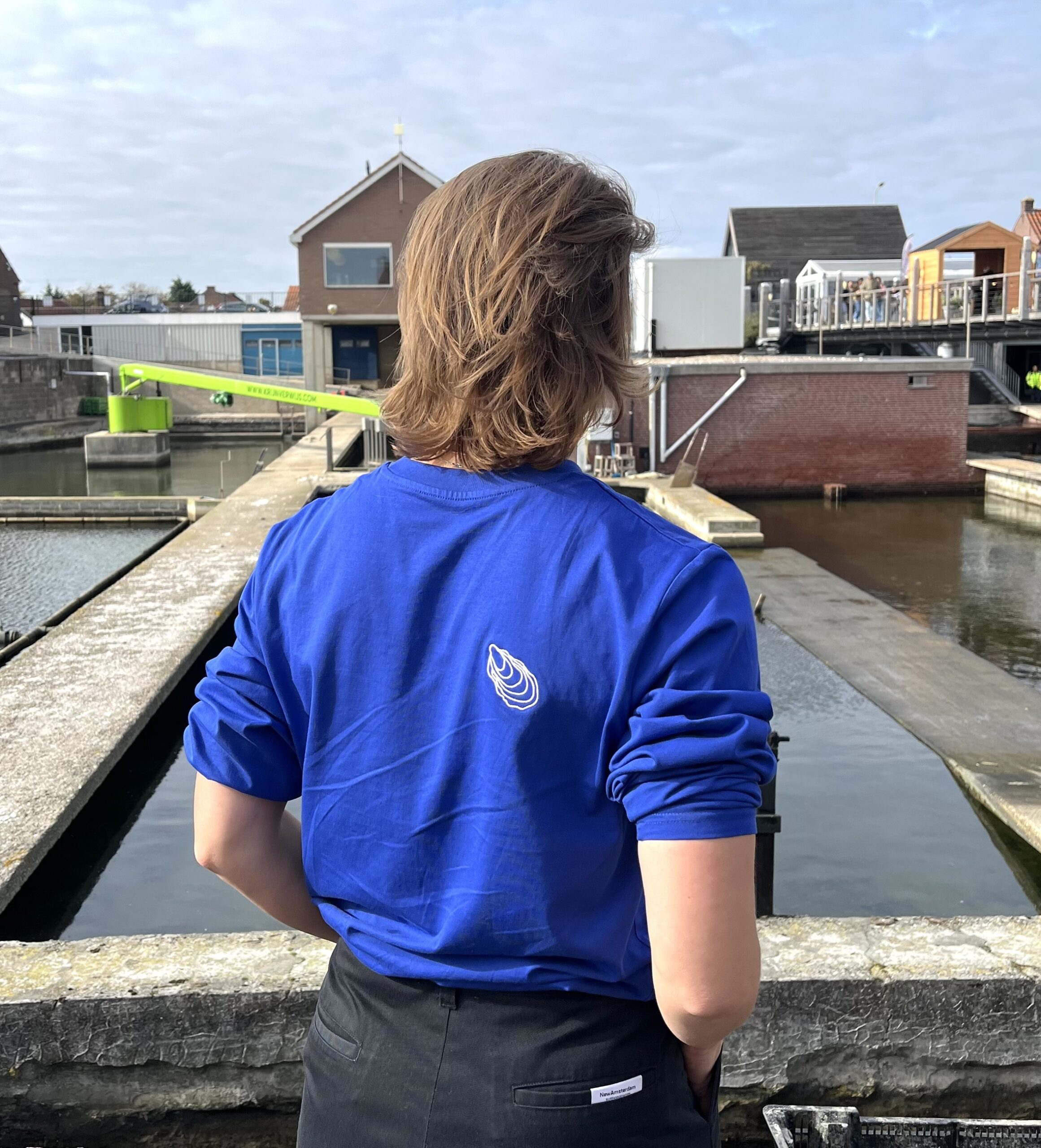 Nieuwe blauwe Koester je Oester longsleeve met kleine oester achter op de schouder!