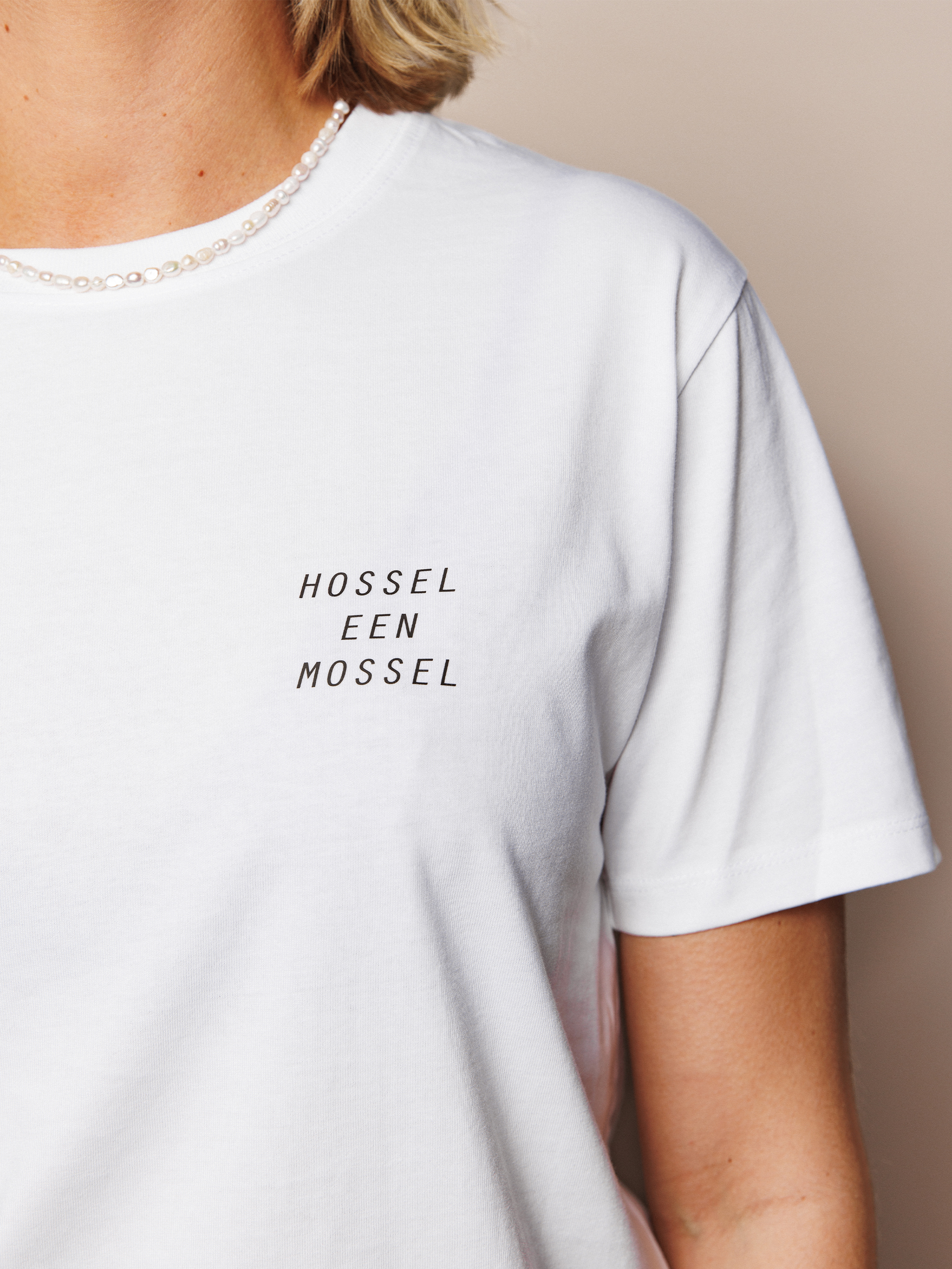 hossel een mossel t shirtHossel een Mossel t-shirt – wit