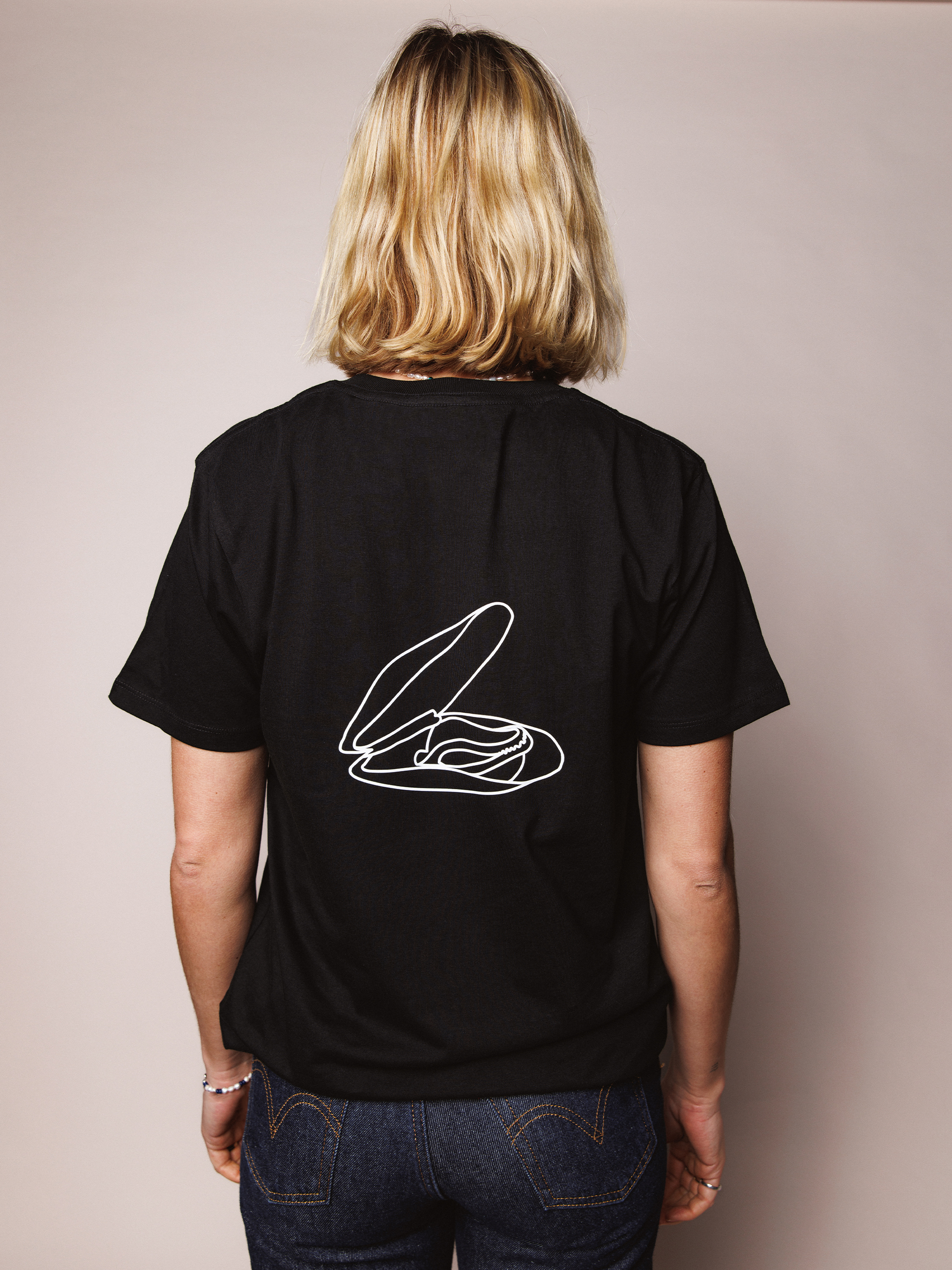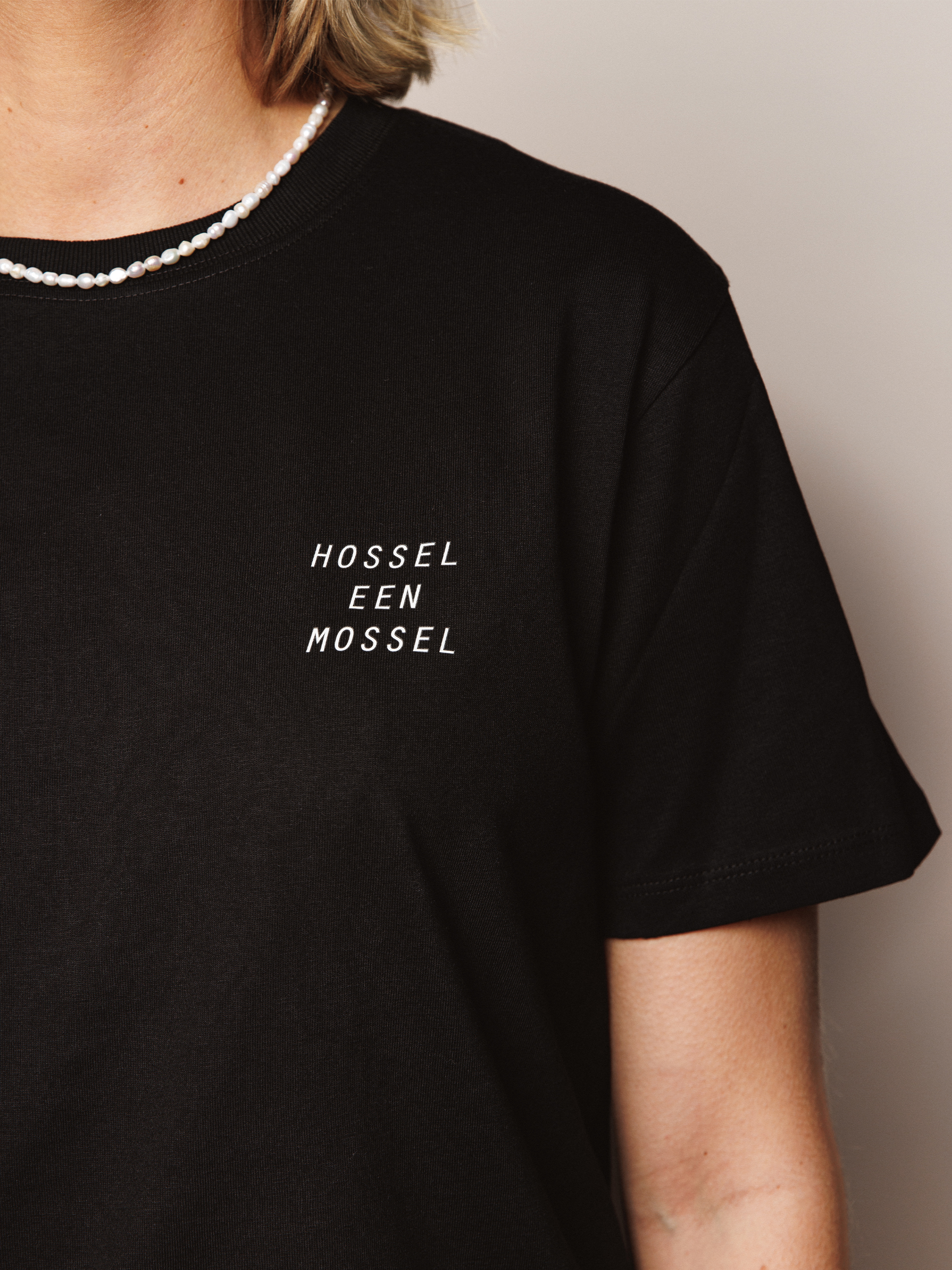 Zwart korte mouwen t-shirt van Hossel een Mossel! (Unisex)